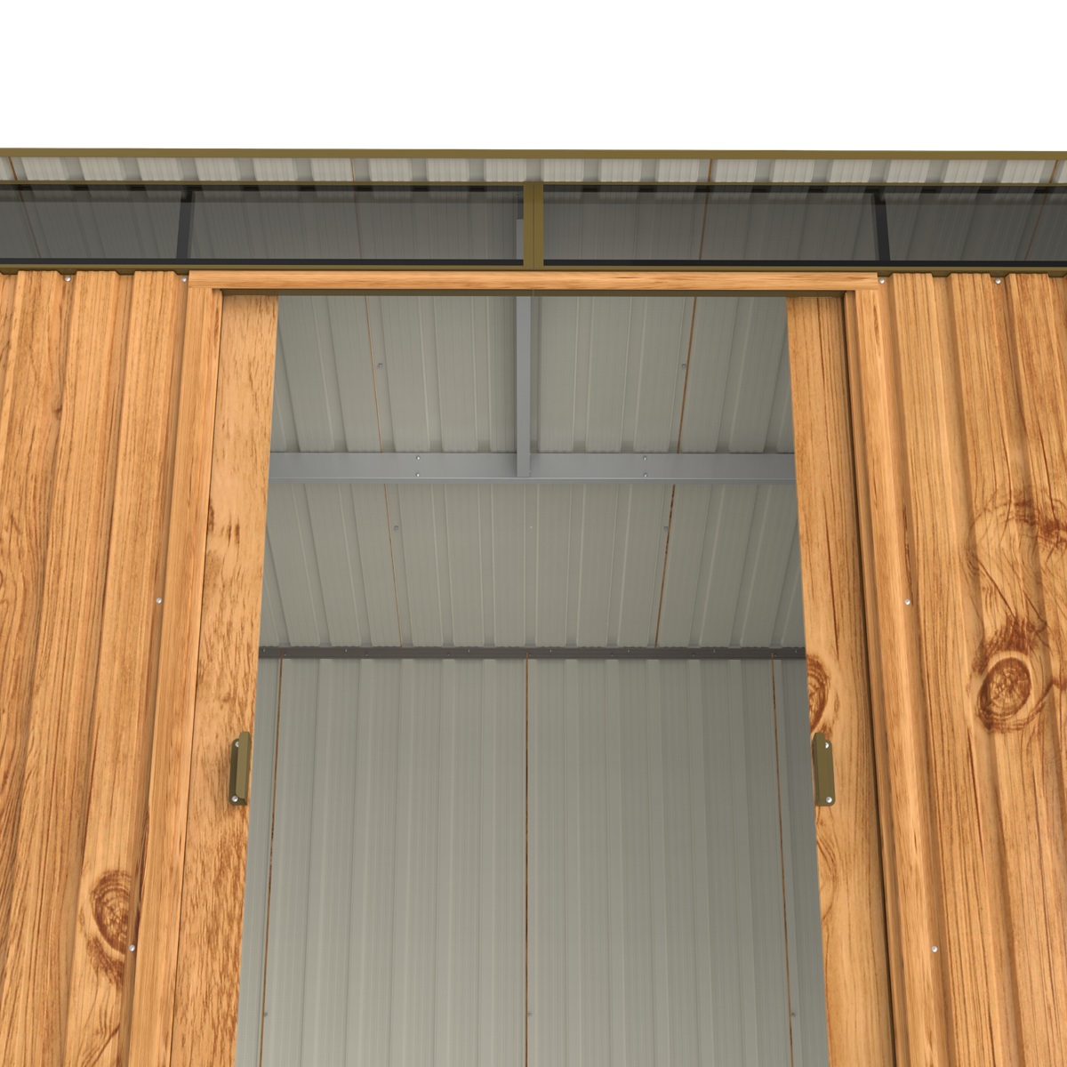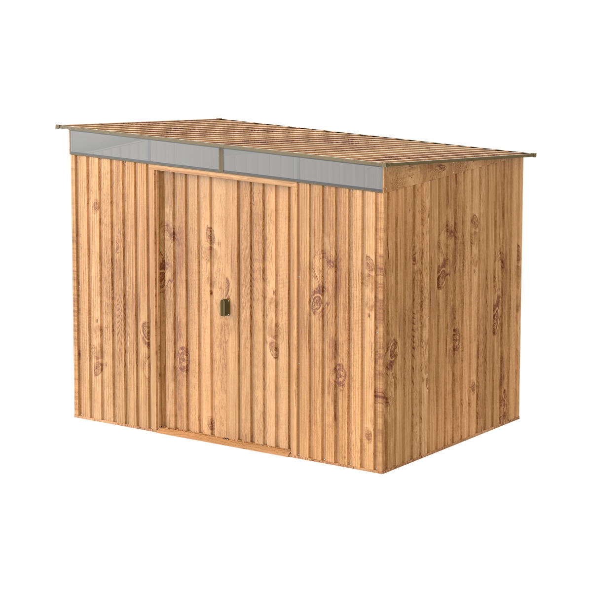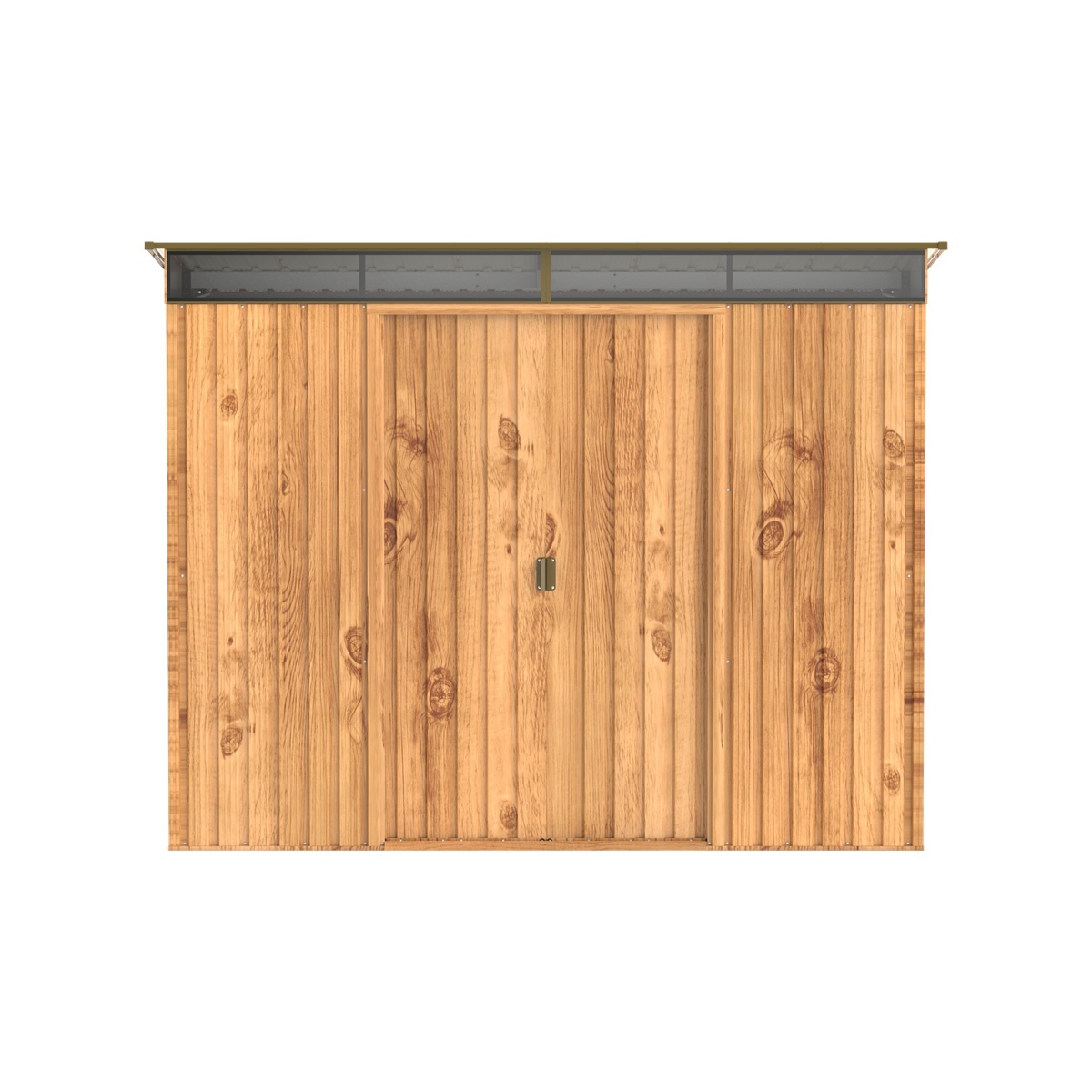Металната градинска барака с покрив Pent Roof 8×6 w/ Skylight е модерен и практичен избор за всеки двор. Тя съчетава издръжливост, функционалност и естетика: вграденият покривен светлопроводник, усилените стени, широките врати и металната конструкция правят тази барака не просто склад, а ценна част от градината.