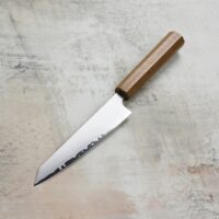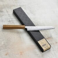 Серията японски ножове Tojiro Reppu елегантно съчетава модерна прахова металургия със своята стомана SG2 и минималистичен дизайн с осмоъгълна дръжка от тиково дърво. В допълнение към красивия си външен вид то е и много устойчиво на влага и плесен. Този нож е много тънък, лек и изключително остър. Сглобката и финишът на Tojiro са превъзходни и последователни. Върхът „киритсуке“ улеснява сложното рязане, като същевременно придава на ножа по-агресивен вид. Ръчно изработен в Цубаме, Япония.
