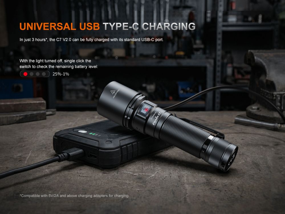 Създаден за суровите условия на професионална употреба, C7 V2.0 разполага с по-голям, подобрен корпус от ултрадебел алуминий A6061-T6 и степен на водоустойчивост IP68, което гарантира, че издържа на силни удари и сурови климатични условия. Практичността е на преден план с магнитна задна част за осветление без използване на ръце и вътрешен водоустойчив USB Type-C порт за зареждане, който предпазва вътрешните компоненти, дори ако капакът е оставен отворен. С седем режима на осветление, включително Strobe и SOS, и специализиран Lockout режим, Fenix C7 V2.0 е здрав, съдържащ само най-необходимото работен кон – прост инструмент с висока мощност, създаден за тези, които ценят суровата производителност повече от ненужни екстри.