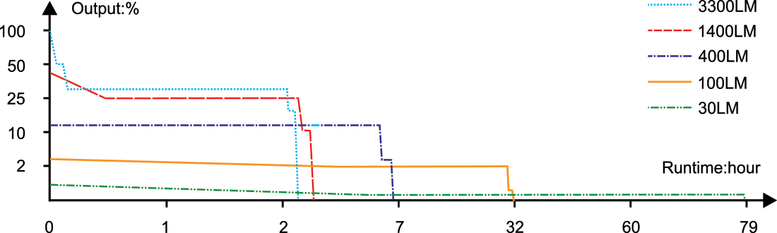 - Режими на осветяване: 7 режима на осветление, включително 5 нива на яркост, стробоскоп и SOS